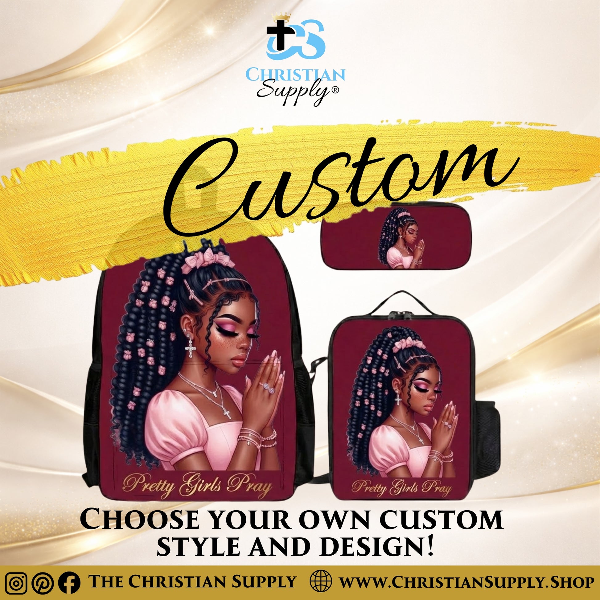 Christian Supply retains full ownership of all original designs. These designs may not be copied, shared, reproduced, recreated, or used for commercial purposes. Uploaded images must belong to you or be legally cleared for use. By uploading them, you confirm that you have permission for Christian Supply to include them in your order.